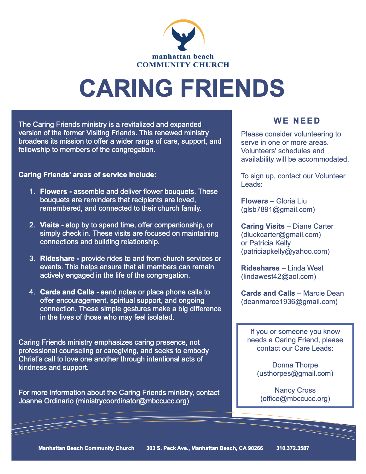 Manhattan Beach Community Church is committed to promoting lasting friendships and strengthened faith through fellowship groups. Wherever you are on your spiritual path, you will find a fellowship group here that meets your needs.