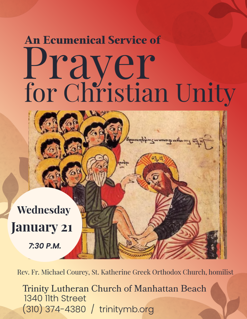 BIBLE FELLOWSHIP – In person or on zoom, in the Fireside Room. We are using a study guide that brings the Bible alive today. We will be exploring today’s news through Bible verses of hope as a tool to persevere and navigate our daily lives in Christian faith.For more information contact Becky Tan, 310-529-9400, or email rjtab39@gmail.com